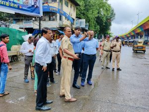 के व्हीला पुलाखालील दुभाजकामुळे नाल्या शेजारील भागीरथी जगन्नाथ गृहनिर्माण सोसायटीमध्ये पावसाचे पाणी साठू लागण्याची बाब स्थानिक नागरिकांनी आयुक्त श्री. बांगर यांच्या निदर्शनास आणून दिली. या सखल भागात पंप लावून पावसाचे पाणी हटवण्याचे काम करावे. तसेच, पावसाळ्यानंतर येथे कायमस्वरूपी तोडगा काढावा, असे निर्देश आयुक्त श्री. बांगर यांनी दिले.