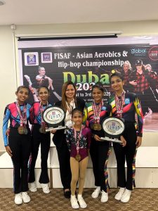१ ते ३ जुलै रोजी दुबई येथे झालेल्या या स्पर्धेत चमकदार कामगिरीने सांची तावडेने ४ सुवर्ण आणि १ रौप्य पदक, साची पटेलने ३ सुवर्ण आणि २ रौप्य पदके, पंथी पोकरने फिटनेस एरोबिक्समध्ये ३ सुवर्ण आणि २ रौप्य पदके जिंकली.